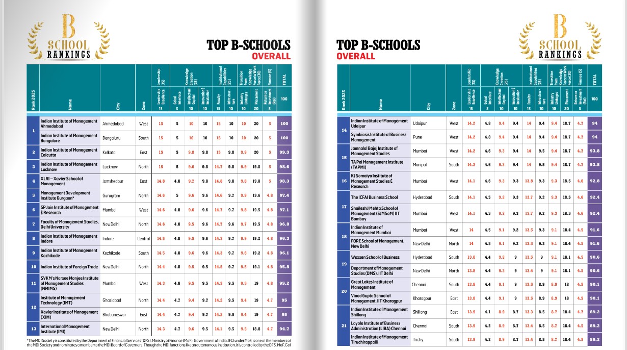 • Ranking of Top Private B-Schools of India – 4 th Overall Ranking